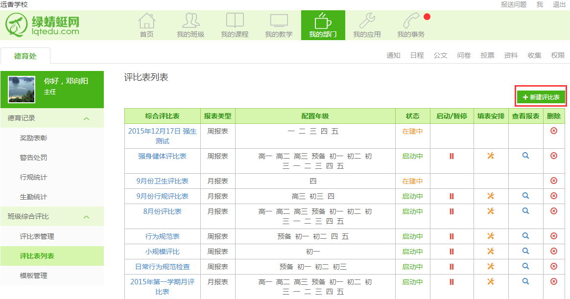(1)平台提供默认评比表模板,学校也可在[模板管理]中新建/修改模板。
